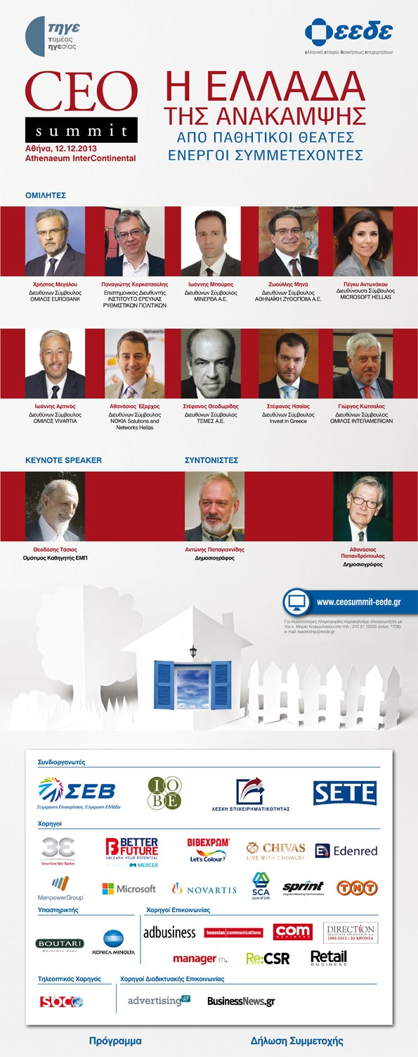 CEO SUMMIT από την ΕΕΔΕ με τίτλο: “Η Ελλάδα της Ανάκαμψης. Από παθητικοί θεατές ενεργοί συμμετέχοντες”, 12 Δεκεμβρίου 2013, Athenaeum Intercontinental