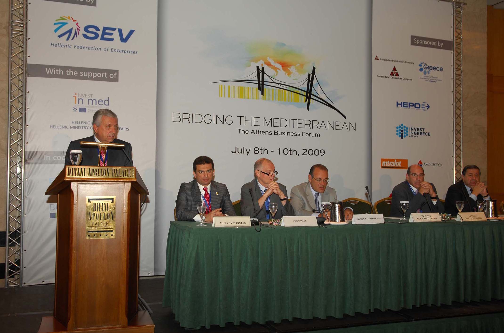 Ξεκίνησαν σήμερα, (Πέμπτη, 9.7.2009) οι εργασίες του Διεθνούς Ευρω-Μεσογειακού Επιχειρηματικού Φόρουμ: “Bridging the Mediterranean:The Athens Business Forum”, που διοργανώνει ο ΣΕΒ, στην Αθήνα (Ξενοδοχείο DIVANI APOLLON PALACE, Καβούρι).
