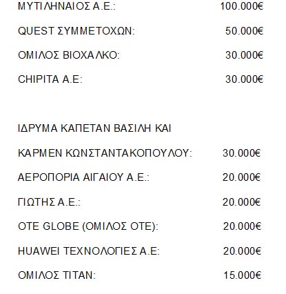 Ενώ με μικρότερα ποσά, συνέβαλαν οι εταιρίες: