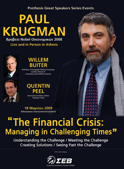 Ομιλία του βραβευμένου με το Νόμπελ Οικονομίας 2008, Paul Krugman, σε ημερίδα με θέμα ”The Financial Crisis: Managing in Challenging Times”, 18/3/2009, Athenaeum Intercontinental