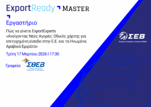 Απαντήσεις στα παραπάνω ερωτήματα θα δοθούν στο ψηφιακό εργαστήριο ExportReady Master που διοργανώνουν ο ΣΕΒ και ο ΣΒΣΕ με θέμα: