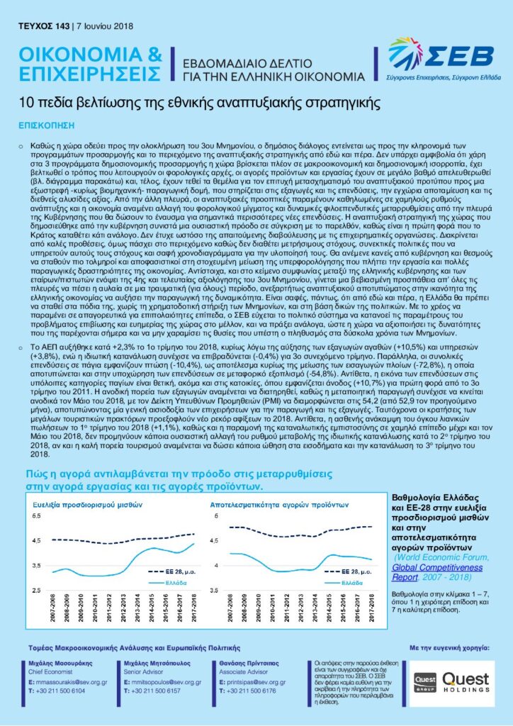 Διαβάστε εδώ το Εβδομαδιαίο Δελτίο για την Ελληνική οικονομία – Οικονομία & Επιχειρήσεις:10 πεδία βελτίωσης της εθνικής αναπτυξιακής στρατηγικής – 7 Ιουνίου 2018.