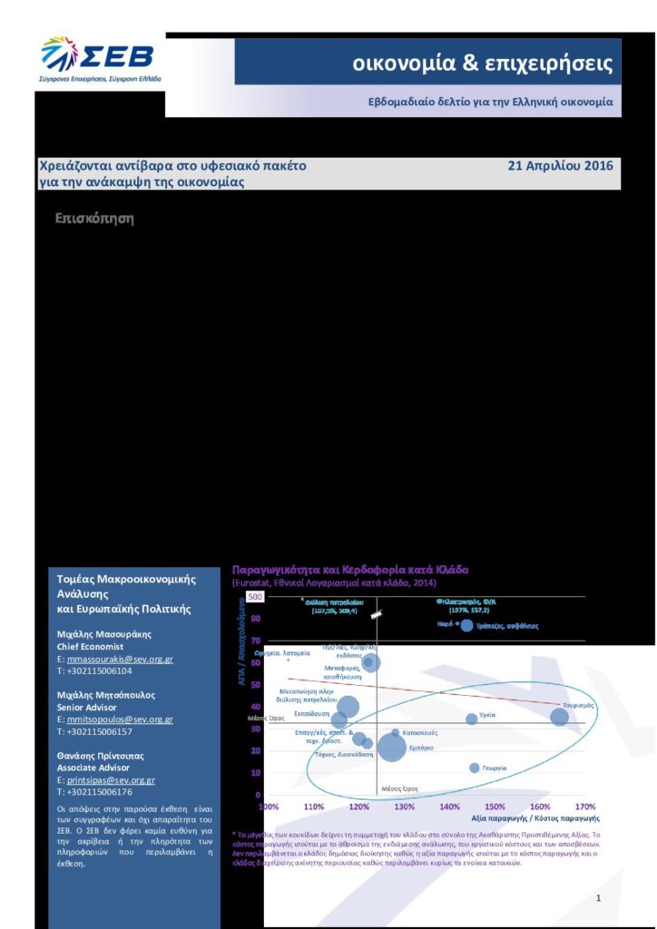 Δείτε εδώ το Eβδομαδιαίο Δελτίο για την Ελληνική οικονομία – Οικονομία & Επιχειρήσεις: Χρειάζονται αντίβαρα στο υφεσιακό πακέτο για την ανάκαμψη της οικονομίας – 21 Απριλίου 2016.