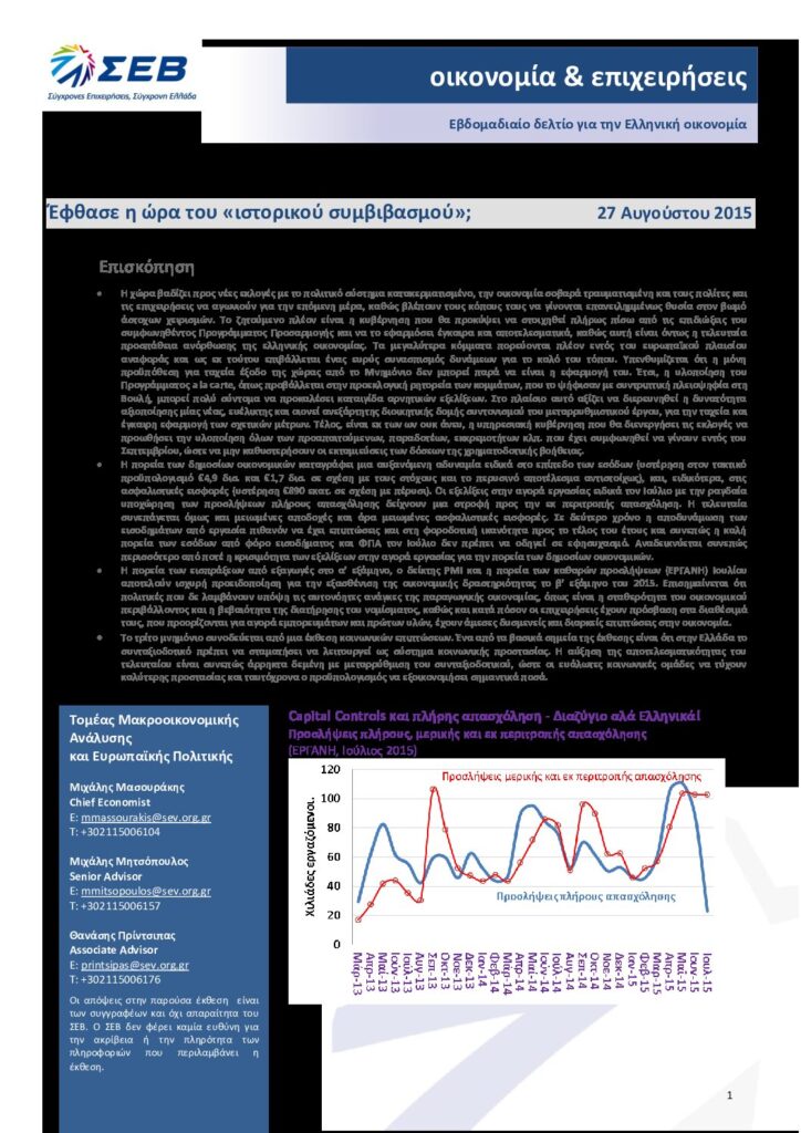 Διαβάστε εδώ το Εβδομαδιαίο δελτίο για την Ελληνική οικονομία – Οικονομία & Επιχειρήσεις: Έφθασε η ώρα του “ιστορικού συμβιβασμού”; – 27 Αυγούστου 2015.
