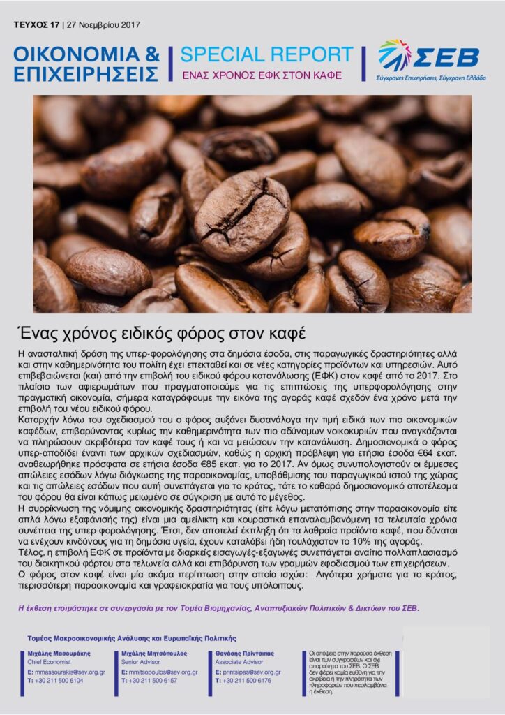 H ανασταλτική δράση της υπερ-φορολόγησης στα δημόσια έσοδα, στις παραγωγικές δραστηριότητες αλλά και στην καθημερινότητα του πολίτη έχει επεκταθεί και σε νέες κατηγορίες προϊόντων και υπηρεσιών. Αυτό επιβεβαιώνεται (και) από την επιβολή του ειδικού φόρου κατανάλωσης (ΕΦΚ) στον καφέ από το 2017. Στο πλαίσιο των αφιερωμάτων που πραγματοποιούμε για τις επιπτώσεις της υπερφορολόγησης στην πραγματική οικονομία, σήμερα καταγράφουμε την εικόνα της αγοράς καφέ σχεδόν ένα χρόνο μετά την επιβολή του νέου ειδικού φόρου.