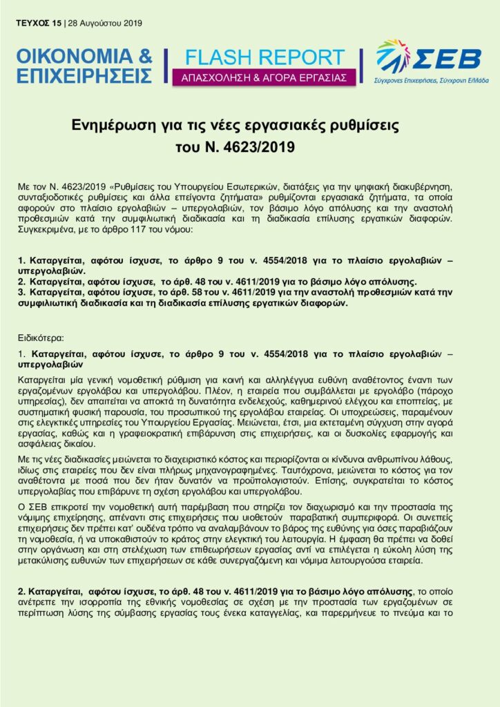 Διαβάστε εδώ το Flash Report “Ενημέρωση για τις νέες εργασιακές ρυθμίσεις του Ν. 4623/2019”- 28 Αυγούστου 2019.