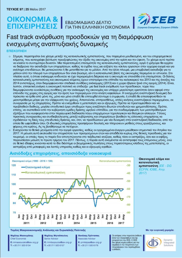 Διαβάστε εδώ το Εβδομαδιαίο Δελτίο για την Ελληνική οικονομία – Οικονομία & Επιχειρήσεις: Fast track ανόρθωση προσδοκιών για τη διαμόρφωση ενισχυμένης αναπτυξιακής δυναμικής – 25 Μαΐου 2017.
