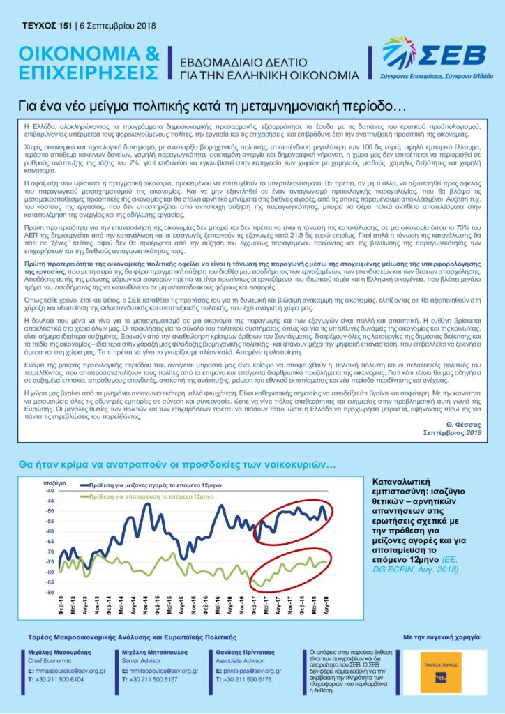 Διαβάστε εδώ το Εβδομαδιαίο Δελτίο για την Ελληνική οικονομία – Οικονομία & Επιχειρήσεις: Για ένα νέο μείγμα πολιτικής κατά τη μεταμνημονιακή περίοδο… – 6 Σεπτεμβρίου 2018.