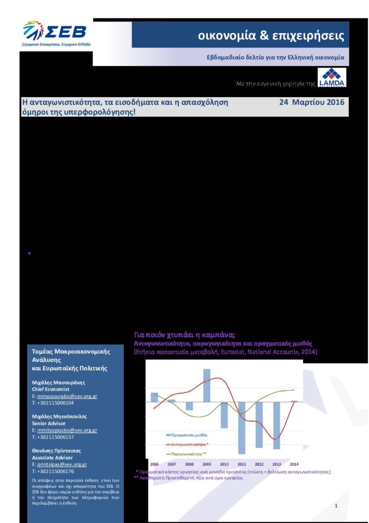 Διαβάστε εδώ το Eβδομαδιαίο Δελτίο για την Ελληνική οικονομία – Οικονομία & Επιχειρήσεις: Η ανταγωνιστικότητα, τα εισοδήματα και η απασχόληση όμηροι της υπερφορολόγησης! – 24  Μαρτίου 2016.