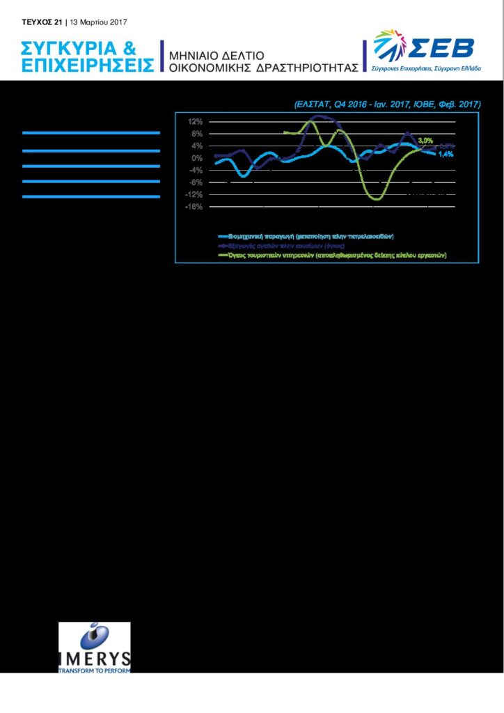 Η λειτουργία της αγοράς σε καθεστώς διαρκούς αβεβαιότητας, καθώς συνεχίζονται χωρίς τέλος οι διαπραγματεύσεις για την ολοκλήρωση της 2ης αξιολόγησης, και η συνειδητοποίηση της κατακόρυφης αύξησης της φορολογικής επιβάρυνσης το 2017, έχουν επηρεάσει αρνητικά την οικονομική δραστηριότητα. Το γεγονός αυτό αποτυπώνεται στην πτώση του ΑΕΠ κατά -1,1% το 4ο τρίμηνο του 2016, κυρίως λόγω της πτώσης των επενδύσεων παγίων και αποθεμάτων, καθώς και στην εξασθένιση του οικονομικού κλίματος τον Φεβρουάριο του 2017 και τη σημαντική επιδείνωση της καταναλωτικής εμπιστοσύνης κατά τον ίδιο μήνα. Από την πλευρά της προσφοράς, πάντως, η βιομηχανική παραγωγή, οι εξαγωγές χωρίς καύσιμα, οι λιανικές πωλήσεις και ο τουρισμός στο 4ο τρίμηνο του 2016 συνεχίζουν την ανοδική τους πορεία με ικανοποιητικούς ρυθμούς, ενώ τον Ιανουάριο του 2017 η βιομηχανική παραγωγή και οι εξαγωγές ενίσχυσαν περαιτέρω τη δυναμική τους.