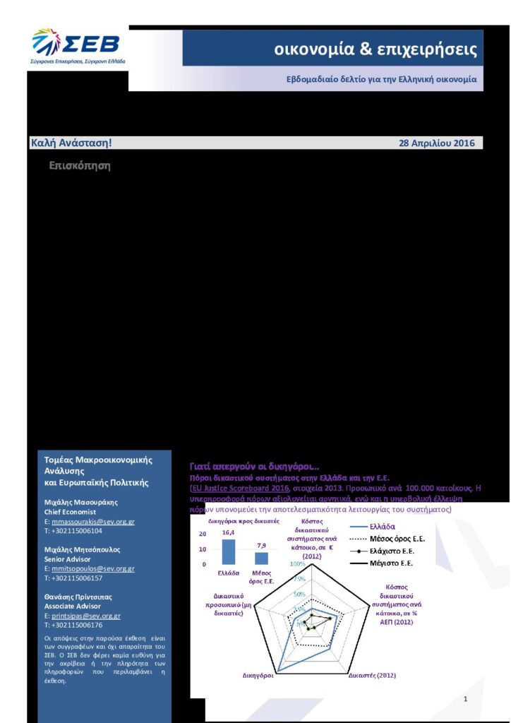 Διαβάστε εδώ το Eβδομαδιαίο Δελτίο για την Ελληνική οικονομία – Οικονομία & Επιχειρήσεις: Καλή Ανάσταση! – 28 Απριλίου 2016.