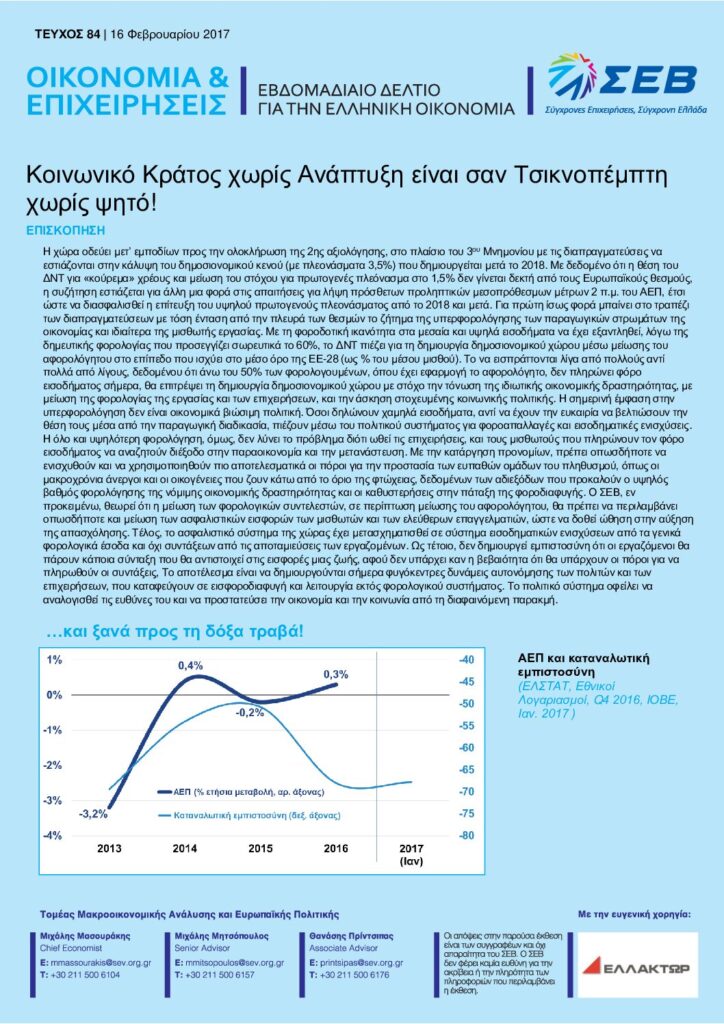 Διαβάστε εδώ το Εβδομαδιαίο Δελτίο για την Ελληνική οικονομία – Οικονομία & Επιχειρήσεις: Κοινωνικό Κράτος χωρίς Ανάπτυξη είναι σαν Τσικνοπέμπτη χωρίς ψητό! – 16 Φεβρουαρίου 2017.