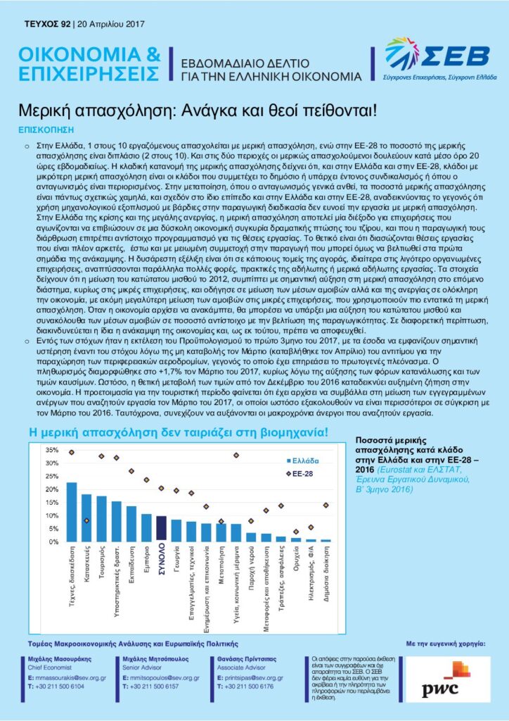 Διαβάστε εδώ το Εβδομαδιαίο Δελτίο για την Ελληνική οικονομία – Οικονομία & Επιχειρήσεις: Μερική απασχόληση: Ανάγκα και θεοί πείθονται! – 20 Απριλίου 2017.
