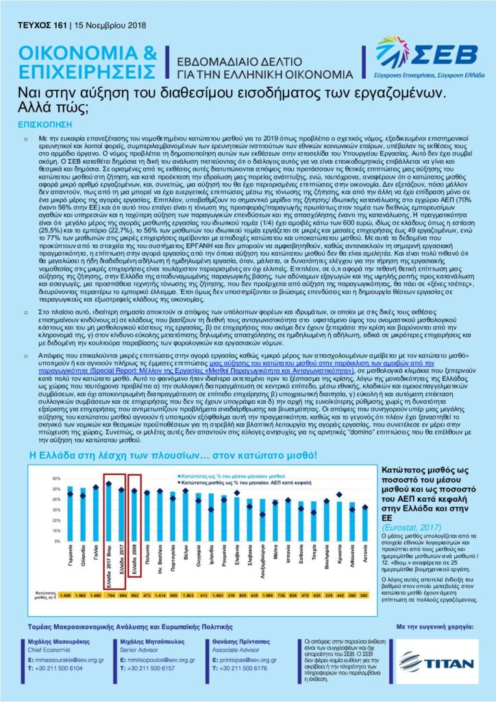 Διαβάστε εδώ το Εβδομαδιαίο Δελτίο για την Ελληνική οικονομία – Οικονομία & Επιχειρήσεις: Ναι στην αύξηση του διαθεσίμου εισοδήματος των εργαζομένων. Αλλά πώς; -15 Νοεμβρίου 2018.