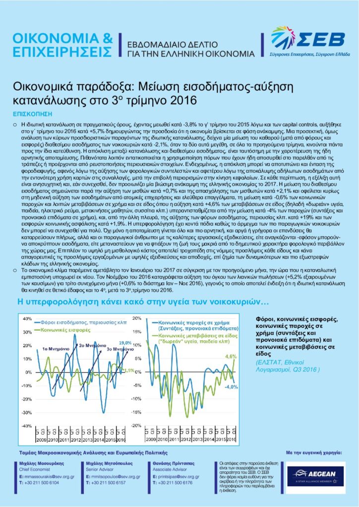 Οικονομικά παράδοξα: Μείωση εισοδήματος-αύξηση κατανάλωσης στο 3ο τρίμηνο 2016 – 2 Φεβρουαρίου 2017