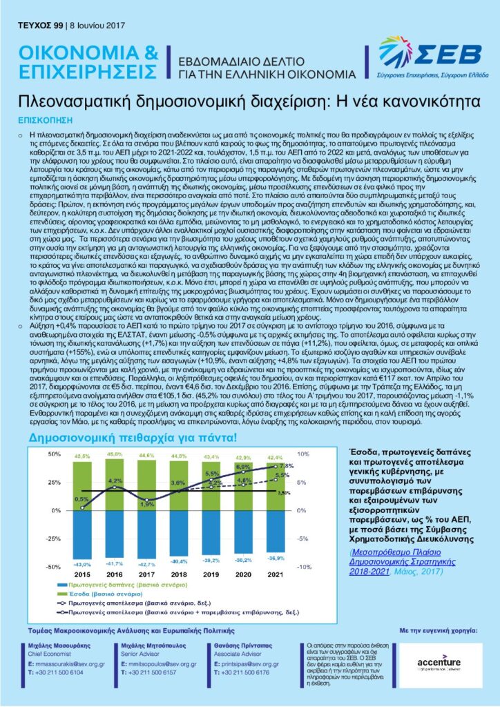 Διαβάστε εδώ το Εβδομαδιαίο Δελτίο για την Ελληνική οικονομία – Οικονομία & Επιχειρήσεις: Πλεονασματική δημοσιονομική διαχείριση: Η νέα κανονικότητα – 8 Ιουνίου 2017.