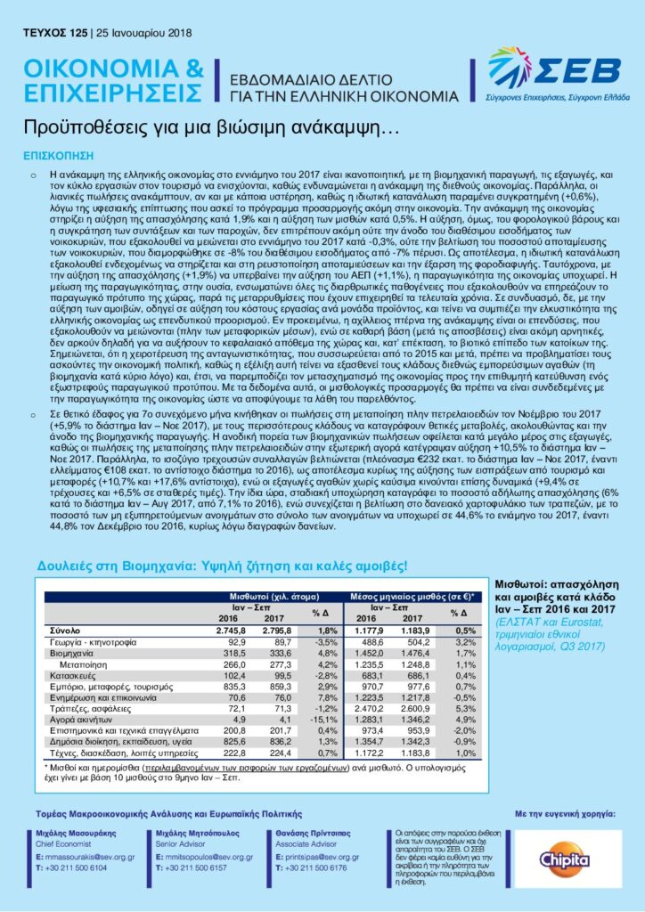 Διαβάστε εδώ το Εβδομαδιαίο Δελτίο για την Ελληνική οικονομία – Οικονομία & Επιχειρήσεις:Προϋποθέσεις για μια βιώσιμη ανάκαμψη… – 25 Ιανουαρίου 2018.
