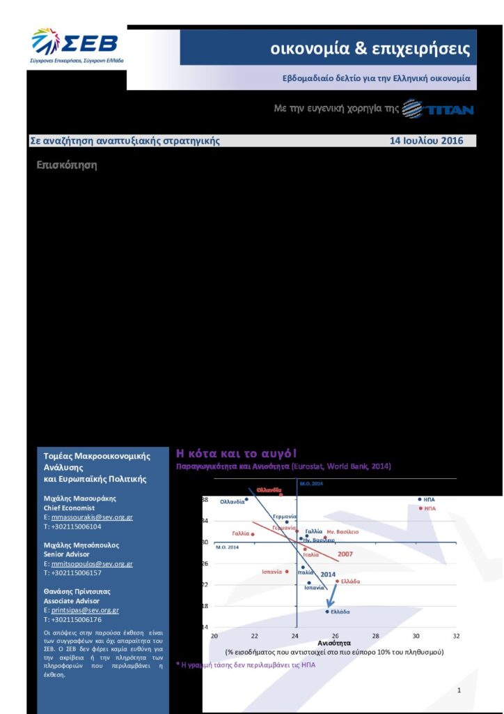Διαβάστε εδώ το Eβδομαδιαίο Δελτίο για την Ελληνική οικονομία – Οικονομία & Επιχειρήσεις: Σε αναζήτηση αναπτυξιακής στρατηγικής – 14 Ιουλίου 2016.