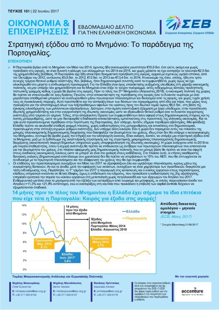 Διαβάστε εδώ το Εβδομαδιαίο Δελτίο για την Ελληνική οικονομία – Οικονομία & Επιχειρήσεις: Στρατηγική εξόδου από το Μνημόνιο: Το παράδειγμα της Πορτογαλίας – 22 Ιουνίου 2017.