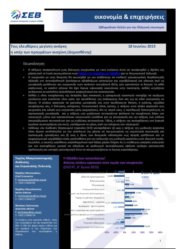 Διαβάστε εδώ το Εβδομαδιαίο Δελτίο για την Ελληνική Οικονομία – Οικονομία & Επιχειρήσεις: “Τοις ελευθέροις μεγίστη ανάγκη η υπέρ των πραγμάτων αισχύνη (Δημοσθένης)” – 18 Ιουνίου 2015.
